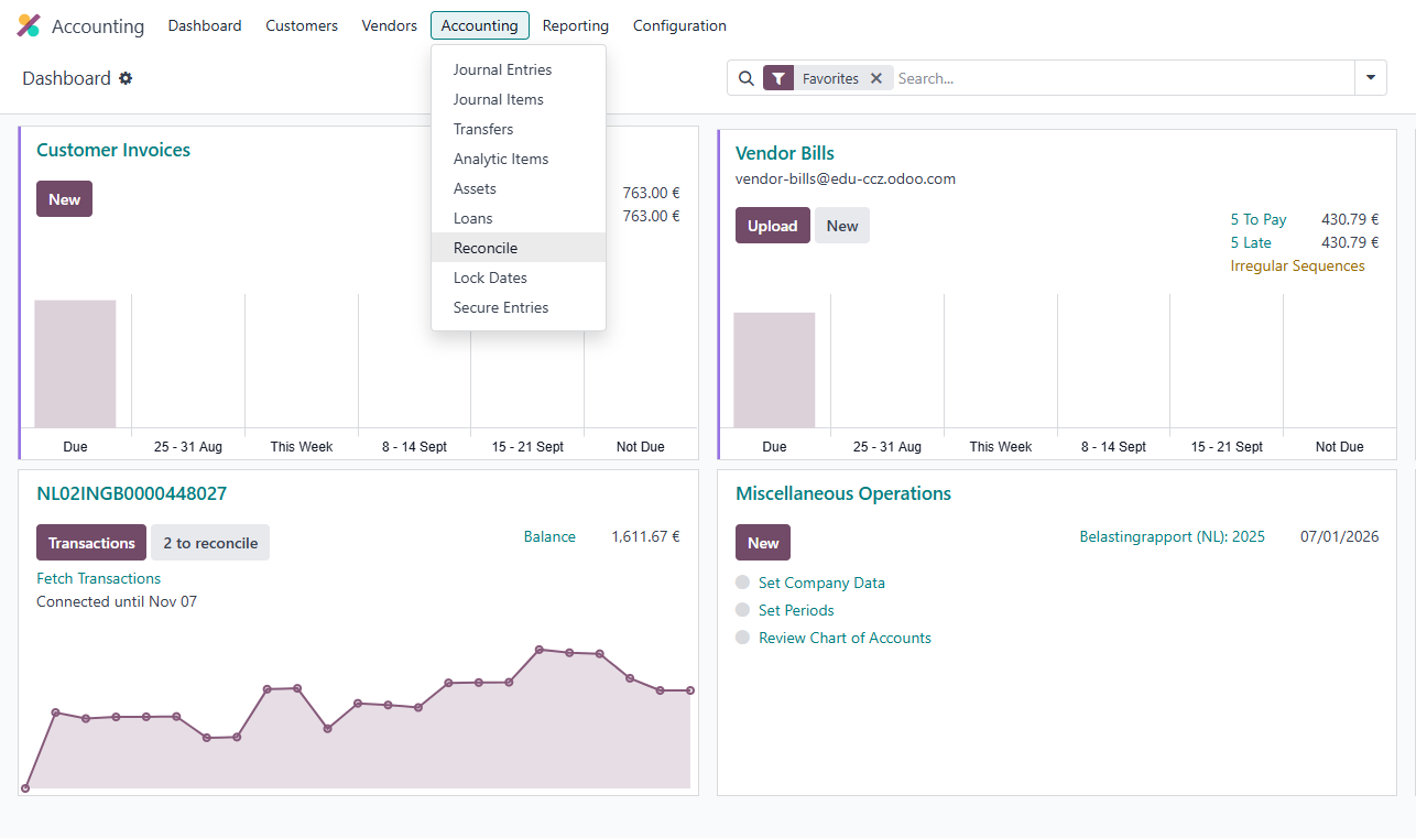 Eén keer een vendor bill bevestigd is kan je die niet meer veranderen. Dan moet je deze terugzetten naar concept, vervolgens de analytische tag zetten zoals bij een nieuwe bill.