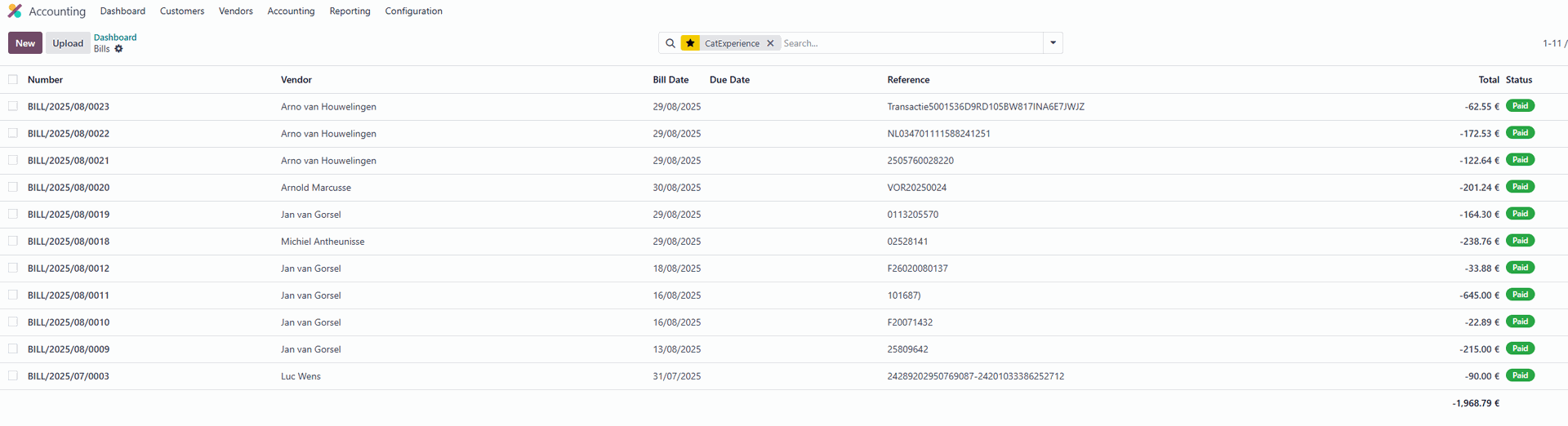 Er waren een aantal bonnetjes gerelateerd aan dit event die we graag in de boekhouding taggen zodat we nadien overzichtjes kunnen krijgen.
