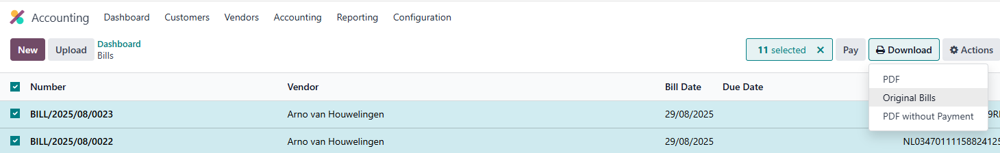 Alles selecteren, Download, Original Bills
