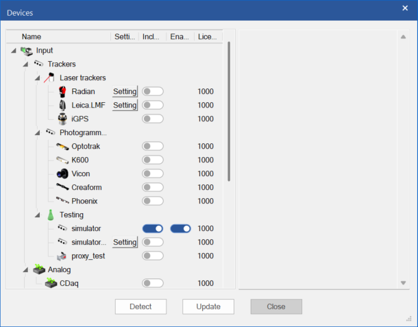 Besides optical trackers, also analog input devices are possible through the addition of CDaq.