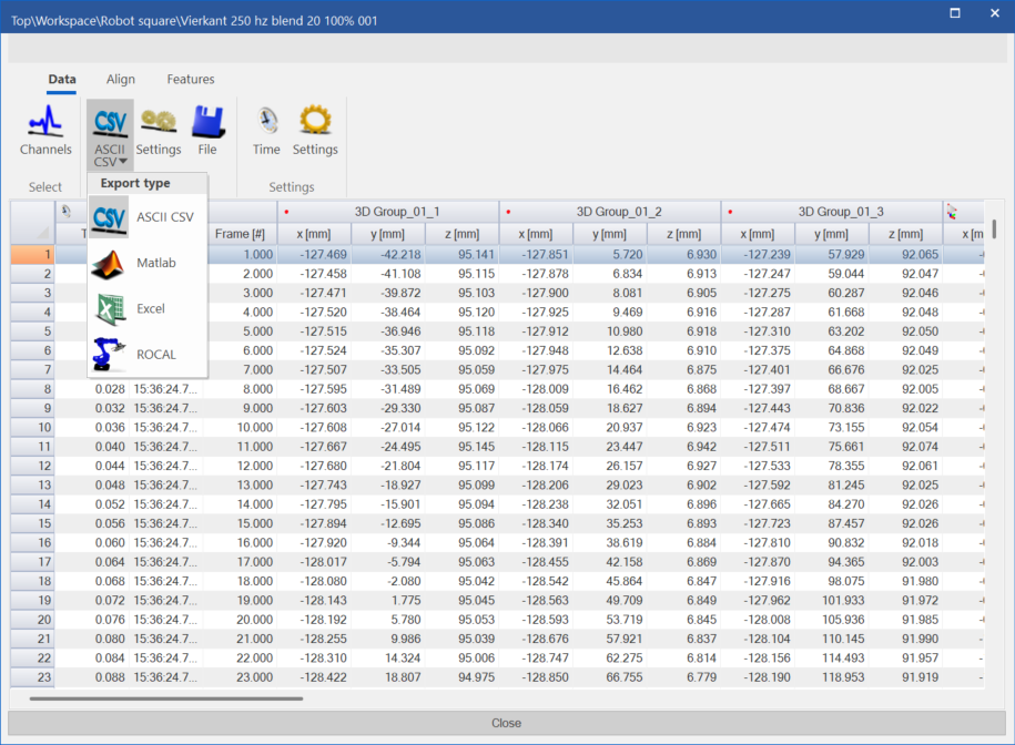 - Rocal : this outputs a .MEA file which can be used in Rocal as measurements, the Rocal.ID module is used to perform the calculation, this can be integrated into CTrack as well as a calculation module so the the resulting Rocal result files can be stored in with that specific robot.