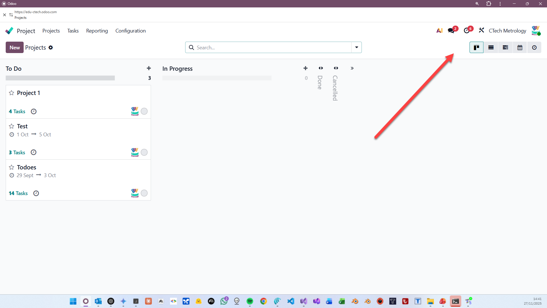 Test this carefully: Select 2 projects, click your new button, and check the logs (or add a raise UserError(str(len(records)))) to confirm it is only sending the 2 projects you want, not the whole database!