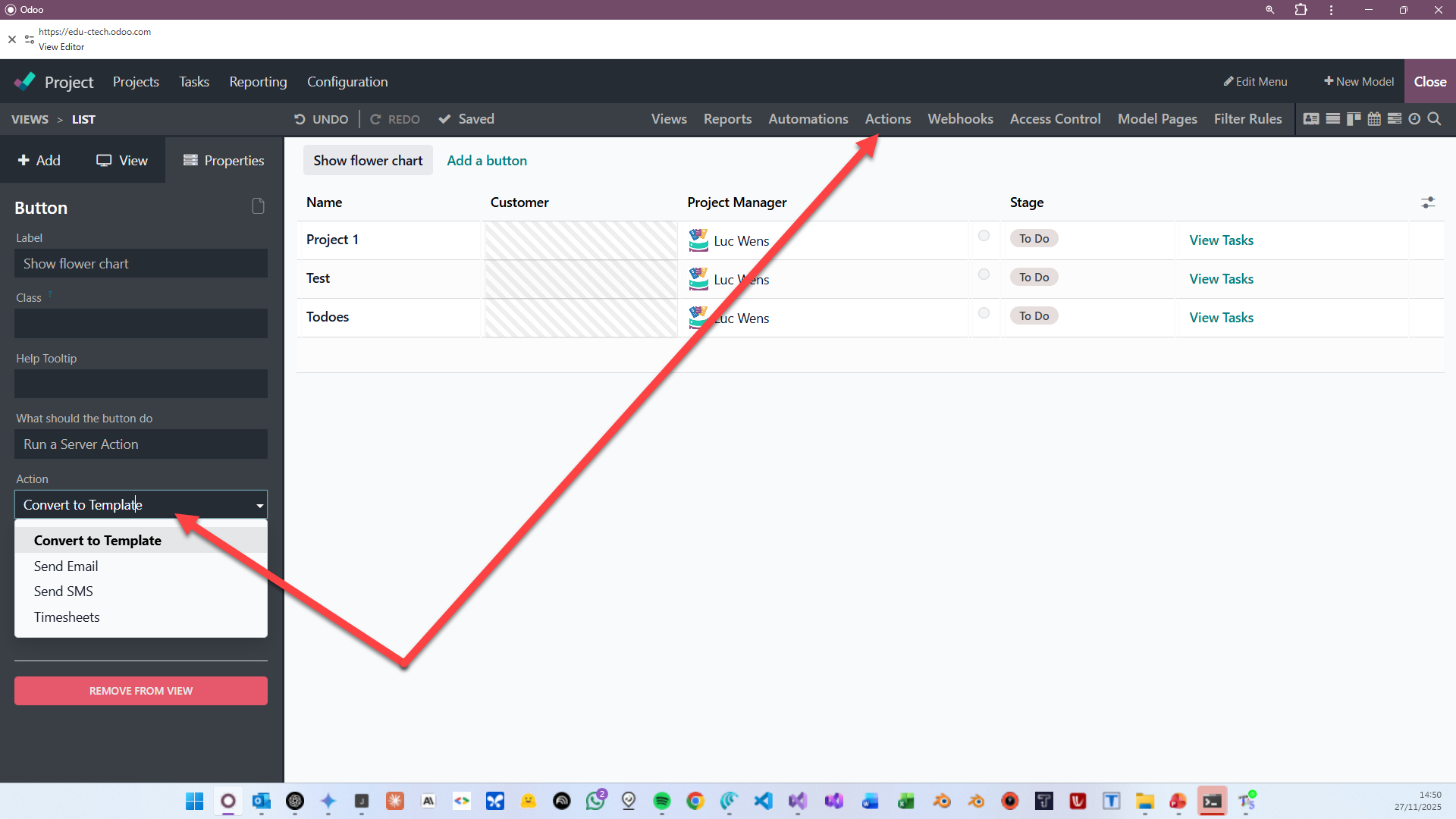 • This is what makes it appear in that "Actions" menu on the Project list.