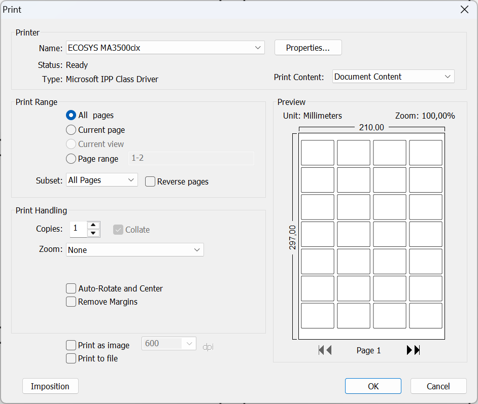 Use the next printer settings in Nuance Paperport for printing